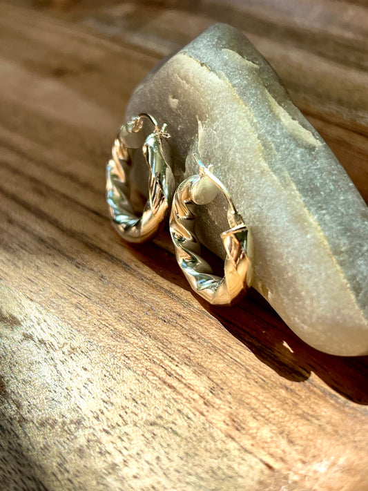 Sterling Silver 925 Twist Hollow Hoop Small Earrings
