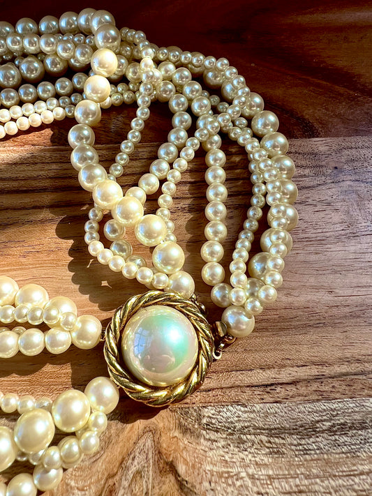 Avon Vintage Butterfly Rhinestone Faux Pearl, Multi Strand Choker Necklace, Victorian Cosplay Costume Jewelry