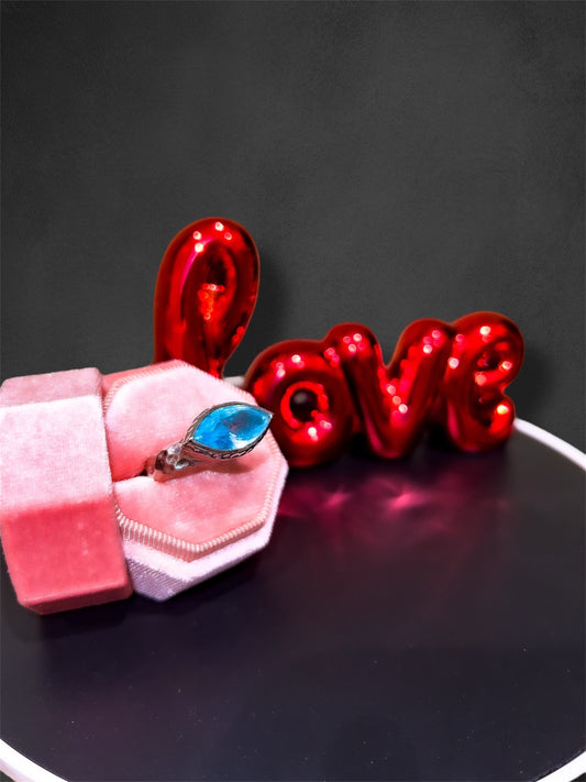 Blue Cubic Zirconia Rhinestone Vintage Costume Engagement Ring