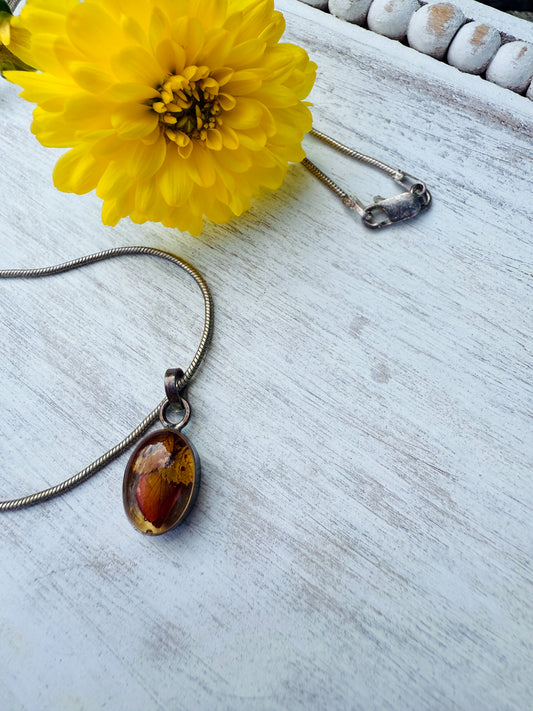 Sterling Silver Artisan Resin Flower Necklace – Real Pressed Bloom Pendant