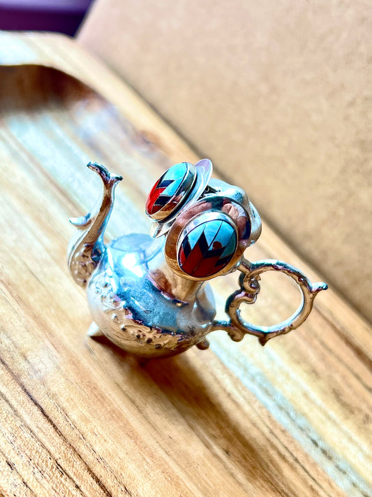 Native American Enamel Sterling Silver 925 Vintage Oval Ella Peter Post Earrings