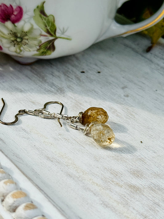 Handcrafted Sterling Silver Citrine Drop Earrings – Dainty Yellow Gemstone Dangles