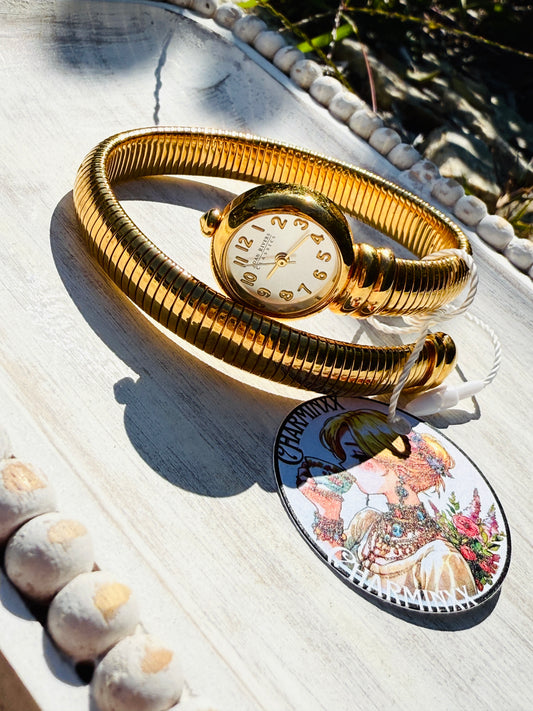 Classic Vintage Joan Rivers Gold Omega Coil Watch Bracelet – Timeless Elegance