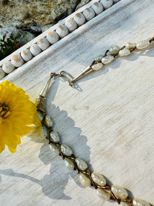 Sterling Silver Beaded Freshwater Pearl Necklace – Vintage-Inspired Strand
