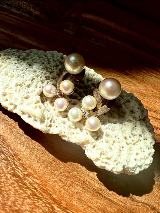 14K Yellow Gold Freshwater White Akoya Pearls w/ Single Diamond Earrings