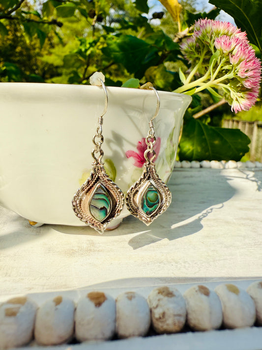 Sterling Silver Abalone Drop Earrings – Coastal Boho Shell Jewelry