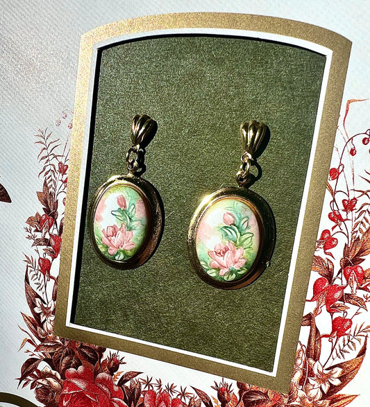 Hand-Painted Floral Cabochon Earrings – Boho Cottage-core-The Painted Jewels Collection