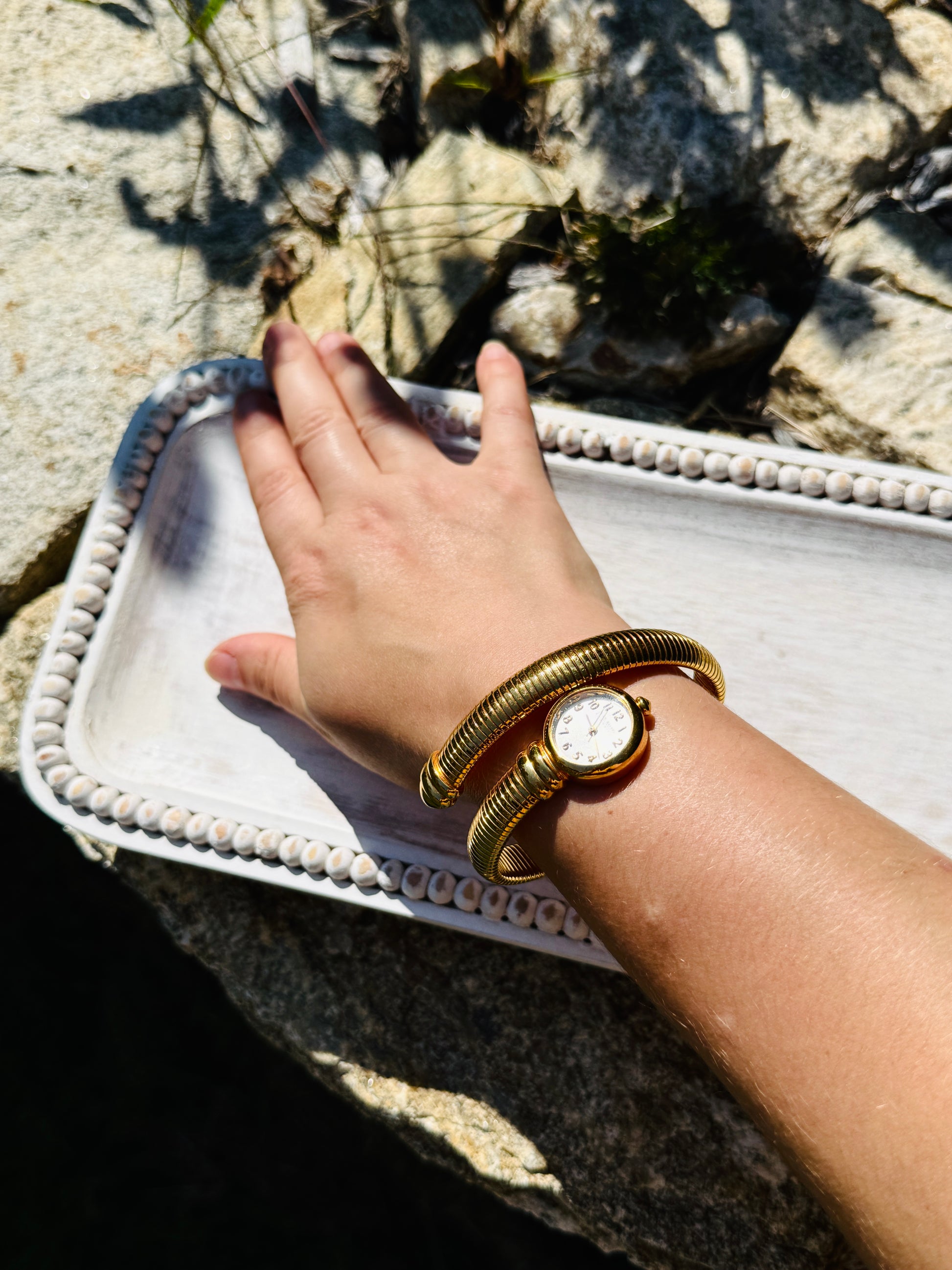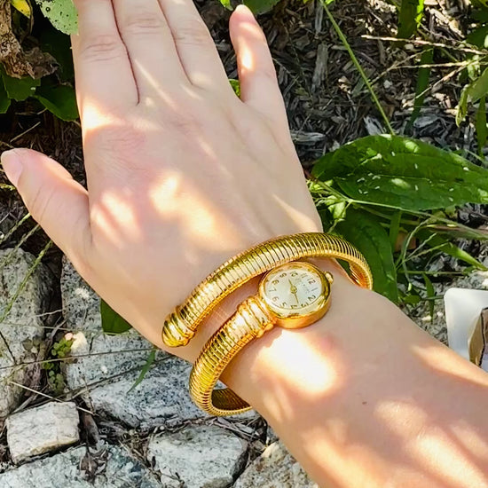 Classic Vintage Joan Rivers Gold Omega Coil Watch Bracelet – Timeless Elegance