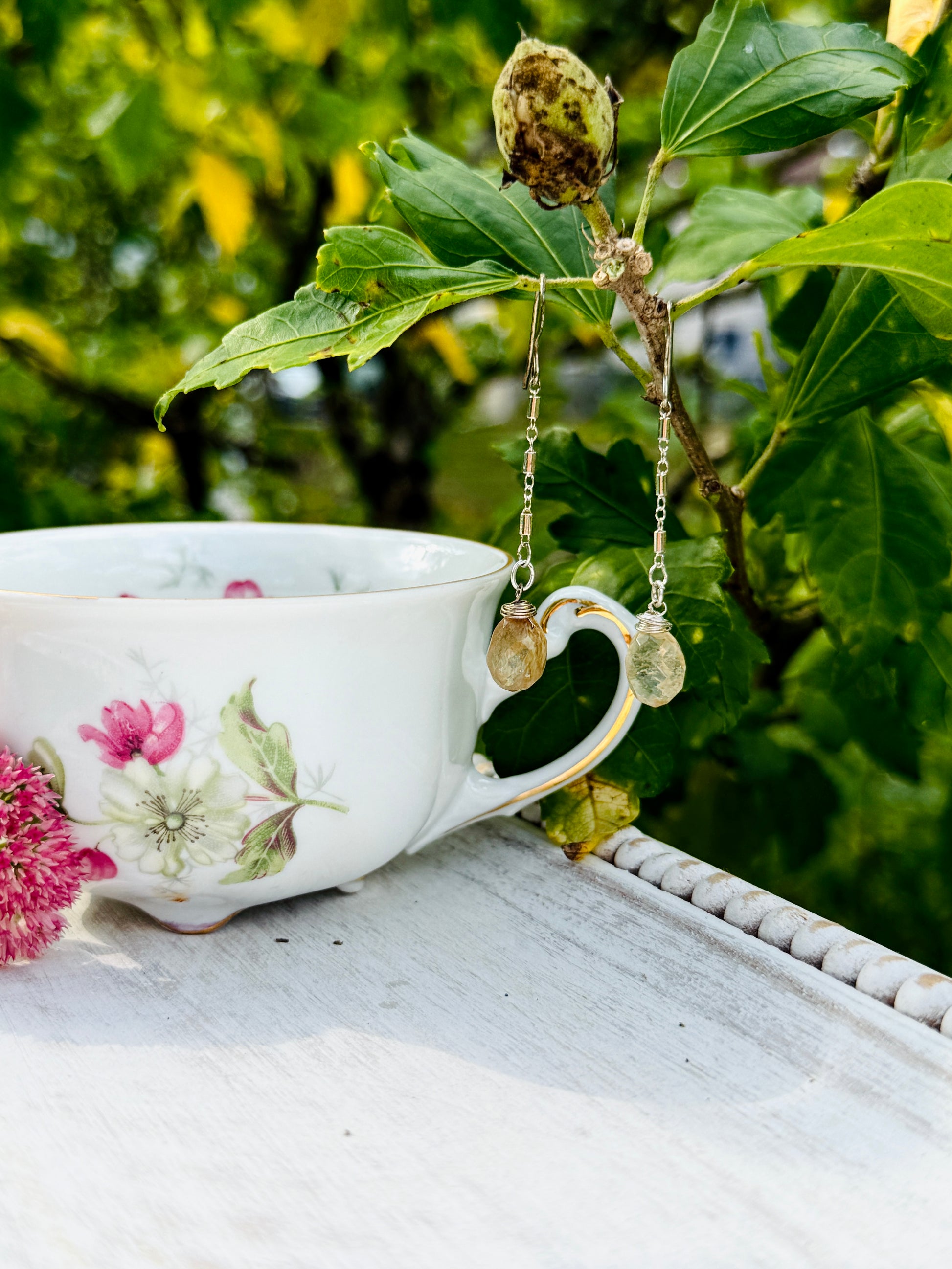 These handcrafted sterling silver citrine drop earrings shimmer softly with golden light — a delicate balance of simplicity and elegance. The natural citrine gemstones are wire-wrapped by hand on slender sterling chains, creating gentle movement that catches the light beautifully with every turn.