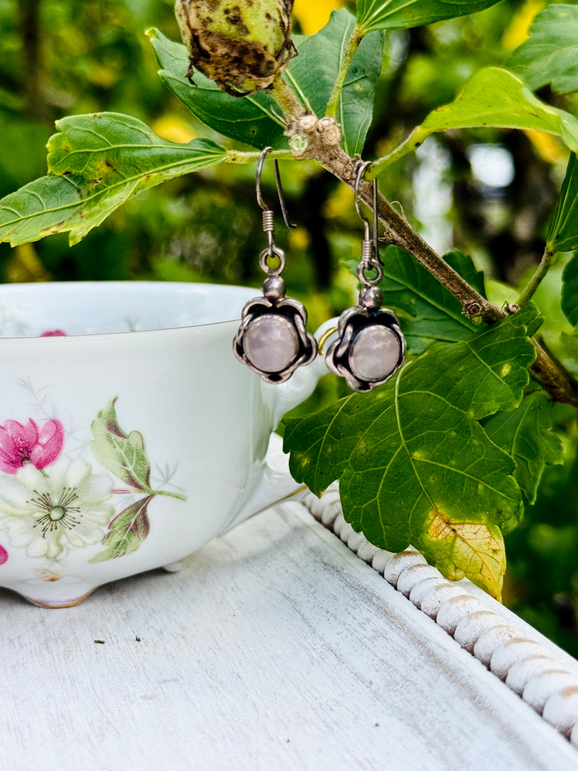 Sterling Silver Rose Quartz Floral Earrings – Vintage Romantic Jewelry