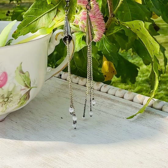 Sterling Silver Tassel Earrings – Dainty Chain Drop Design